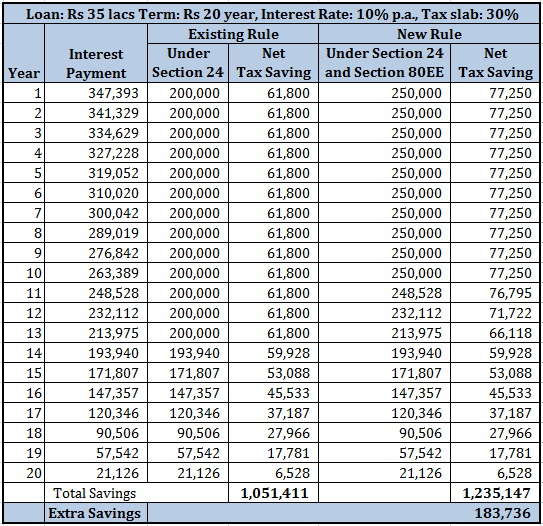 In case of Rs 35 lacs loan, this will result to net savings of Rs 1.83 lacs over 20 years for borrower in 30% tax bracket.