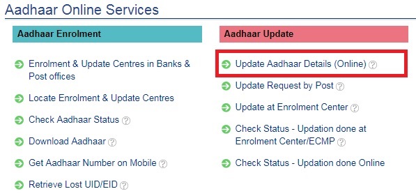 - Online (by visiting Self Service Online Portal or the UIDAI website)