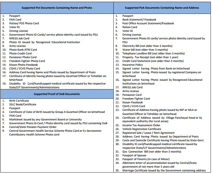 UIDAI has provided a list of acceptable documents that you can submit. You can access the list here.