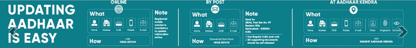 Similarly, you cannot update your mobile number by post. It can be done online or by visiting an Aadhaar center.